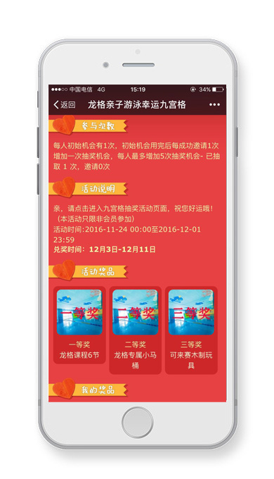 龙格亲子游泳呼和浩特中心微信平台举办的活动,幸运九宫格。呼搜网为龙格亲子游泳微信公众号提供技术支持和平台搭建。