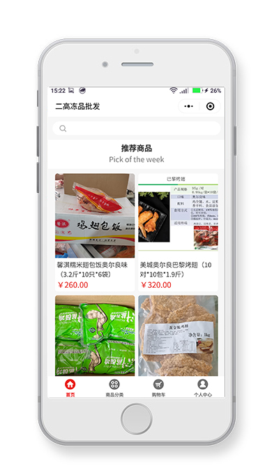 二高冻品批发小程序是微商城版、用户需要先注册商户,后台审核通过才可以进行购买;商城设有优惠券、自主上传商品、在线微信支付、线下付款、到货付款三种支付方式随机选择;另外用户进入个人中心开通会员卡、享受会员价,呼搜网络从策划到开发上线全程提供服务。